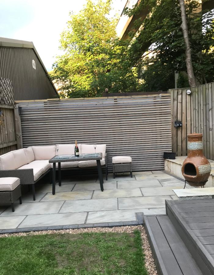 Some carefully chosen garden furniture and a chimenea completed the modern garden patio and new seating area which blended perfectly with the house and the effect the owners wished to achieve.