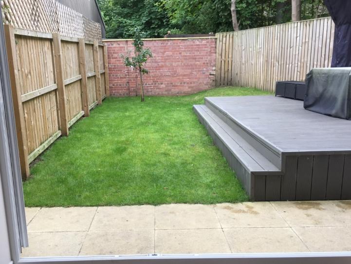 I was asked to redesign this back garden of a new build house in Otley. The owners wanted an area where they could entertain guests and spend time in the evenings after work. They are not gardeners so wanted a very low maintenance area. They also wished to retain the decking for barbecues and additional seating/dining.