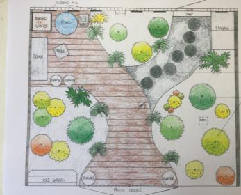 The garden owner certainly loves his plants as the pictures of the original area shows. He had a great colourful and varied collection of specimens but every plant was housed in a container or a pot – even the small trees and large shrubs. What he really wanted to do was to gain some order and structure in his garden and have an Oriental peaceful feel to the space. We discussed having a Japanese theme to the garden and creating some deep planting beds to enable the majority of the plants to go into the ground instead of remaining in containers.