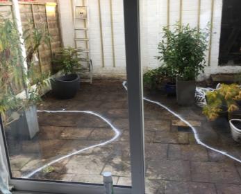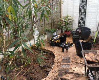 The design required the small brick raised bed to be demolished so this was the first stage of the clearance. The majority of the planting was temporarily relocated to make it easier to work in the space and the line of the decking and the planting beds were marked out.
