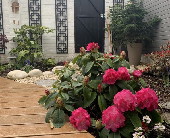 Despite torrential rain on the day of planting we finally managed to get most of the large specimens into the ground and I hope you will agree that the garden is quite a transformation. It is however a work in progress. As with many gardens that are built in the late autumn and early winter time we are at the mercy of the elements and reliant on the seasons for planting. So in springtime 2021 and throughout summer the deciduous planting will once again spring into life and the bamboos and grasses can be added to the structure of the garden. Also the remaining Japanese features (bench & pool) will take their place on the seating area. Watch this space and I will update with further pictures.
