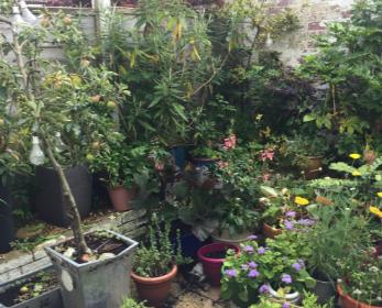 An overcrowded back yard
