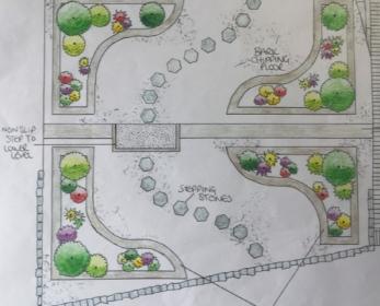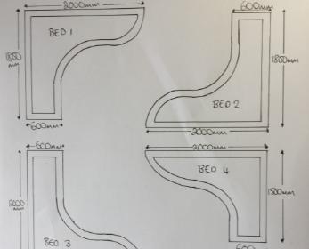 As I needed to engage a contractor to build the retaining sleeper wall and curved beds additional drawings were completed to set out the details required – the gradient of the garden, the specification for the two levels and the size and dimensions of the four sleeper beds.